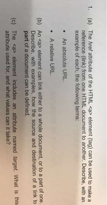 Solved The Href Attribute Of The Html Element Can B Chegg Com